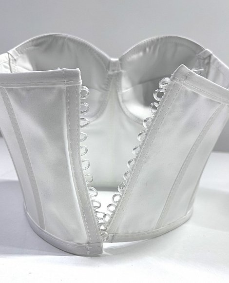 Готовый корсет из корсетного сатина. Модель с фигурными линиями верха и низа изделия эффектно подчеркивает формы. Утягивается на шнуровку, благодаря чему можно выбрать комфортное прилегание изделия. Разные размеры от 42 до 50.